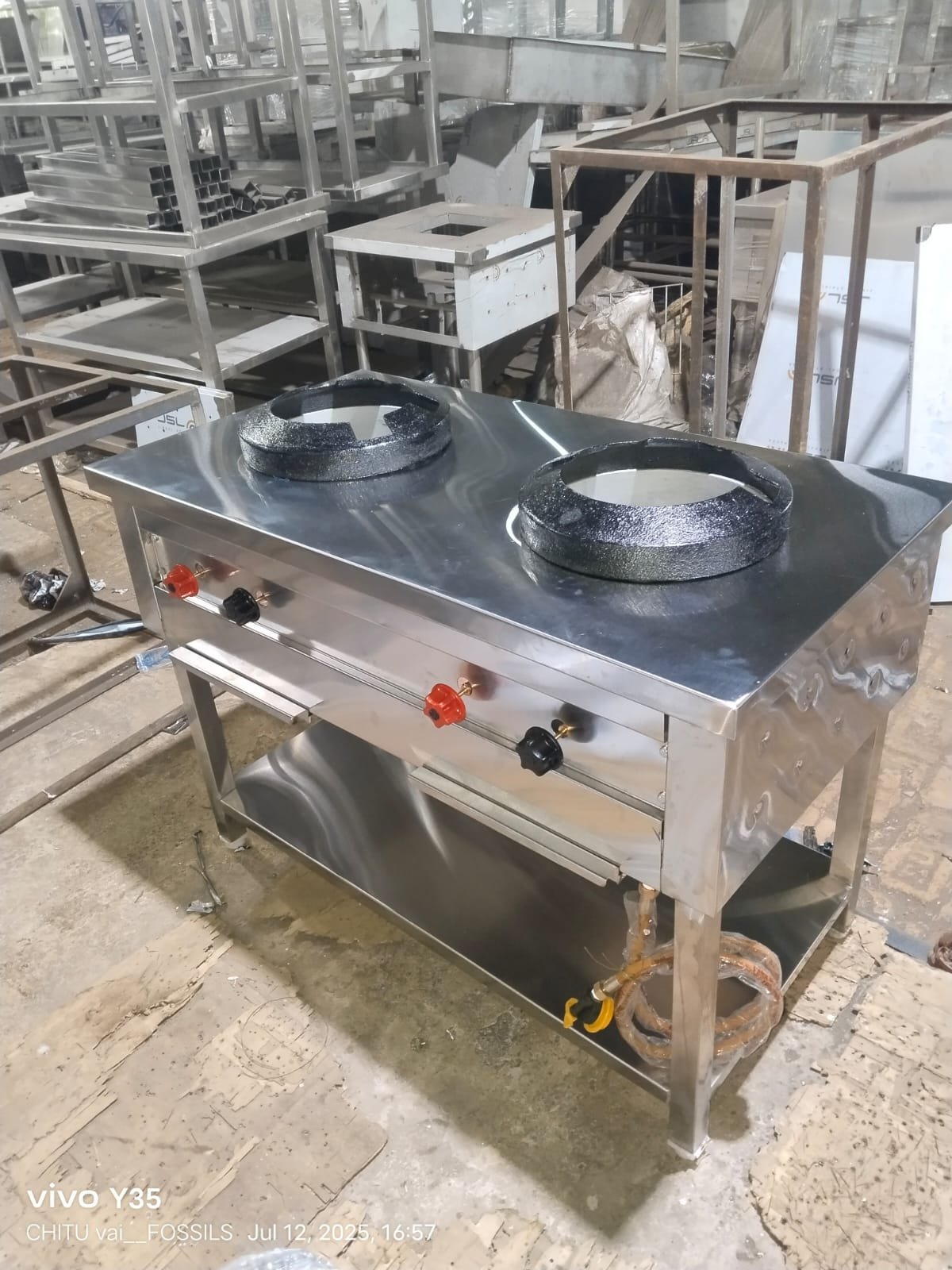 The S.S. 2+1 Chinese Burner Range with One Under Shelf is designed for commercial kitchens requiring both high-heat wok cooking and a smaller auxiliary burner for simmering or sauces. Crafted from heavy-duty stainless steel, it combines powerful cooking performance with convenient under-shelf storage for utensils, ingredients, or cookware.